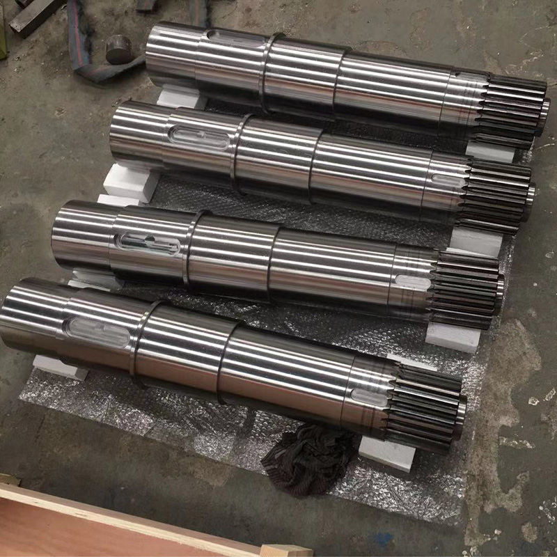 棒料、鍛件 → 粗車加工 → 調(diào)質(zhì) → 精車加工 → 銑鍵槽 → 熱處理(表面淬火貨滲碳淬火) → 研磨中心孔 → 粗磨 → 精磨 → 成品檢測包裝